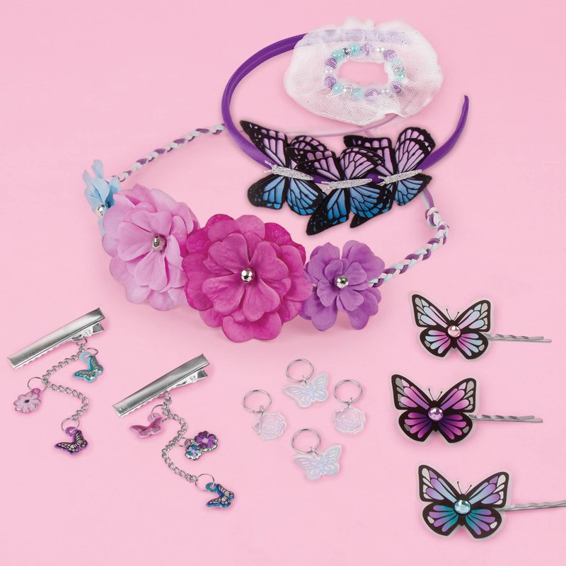 Make It Real: Crown Of Enchantment - DIY Jewelry Kit, Create Up To 12 Eye-Catching Charm Hair Accessories, Butterflies, 73 Pieces, All-In- 1 DIY KIT, Tweens & Girls, Arts & Crafts, Kids Ages 8+
