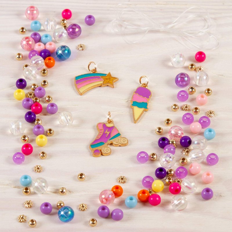 - EVERYTHING INCLUDED. This jewelry kit has everything your child needs to create up to three unique and expressive charm bracelets, along with a beaded ring! Includes elastic cord, 70+ stylish beads, 30 gold beads, 3 unique charms, and instructions.