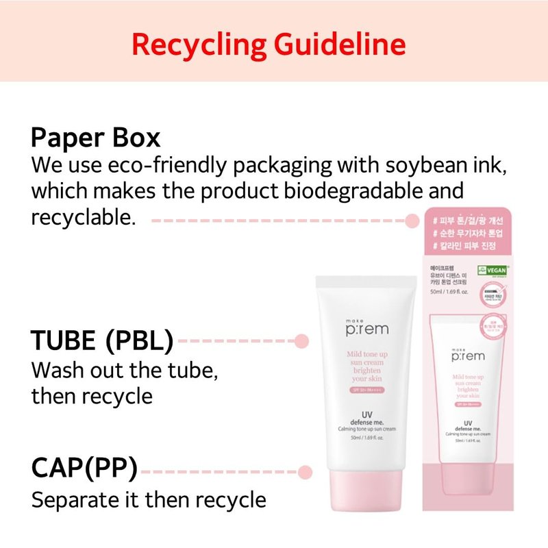 - 🌿 Sunscreen for Sensitive Skin: Made with gentle, naturally-derived ingredients, the MAKE P:REM UV Defense Me. Calming Tone Up Sun Cream is specially designed to calm and protect even the most sensitive skin. Clinically tested and proven to be irritation-free, this sunscreen is perfect for those who desire a soothing, yet highly effective sun care solution. Its low-irritation formula ensures your skin stays comfortable and protected throughout the day.