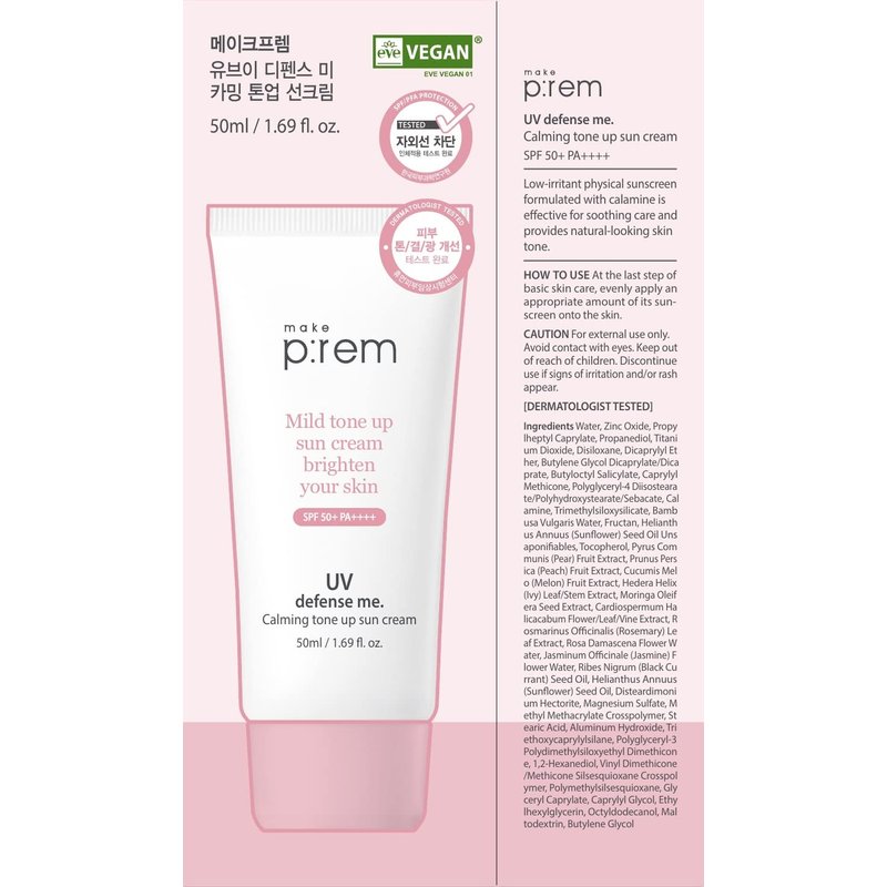 MAKEPREM UVA UVB Defense Me Calamine Calming Sun Cream SPF 50+ PA++++ 1.69 Fl Oz Korean Mineral Sunblock VEGAN Sunscreen Reef-safe Mild Non-Irritating Sensitive Acne-Prone Skin Non-Nano No Chemicals