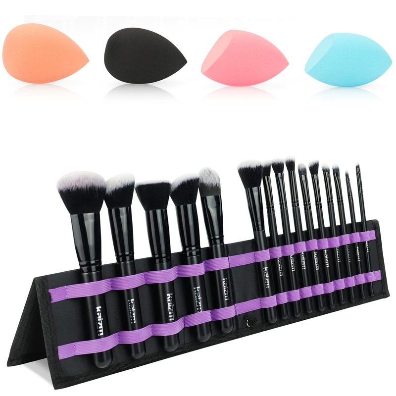 Makeup Brushes 15 pcs Makeup Kit,Foundation Powder Brush Eyeshadow Brush Concealers Blush Face Make up Brushes Set with fabric storage bag and 4pcs Beauty Blender Sponge