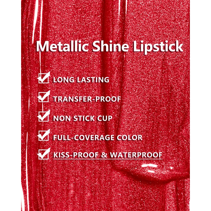 - Metallic Lipstick: This red lipstick set is infused with pearlescent pigments that stay all day and won’t make your lips feel dry.You can get full coverage lips payoff with just one swipes. Apply a thick layer or a thin layer can show different style