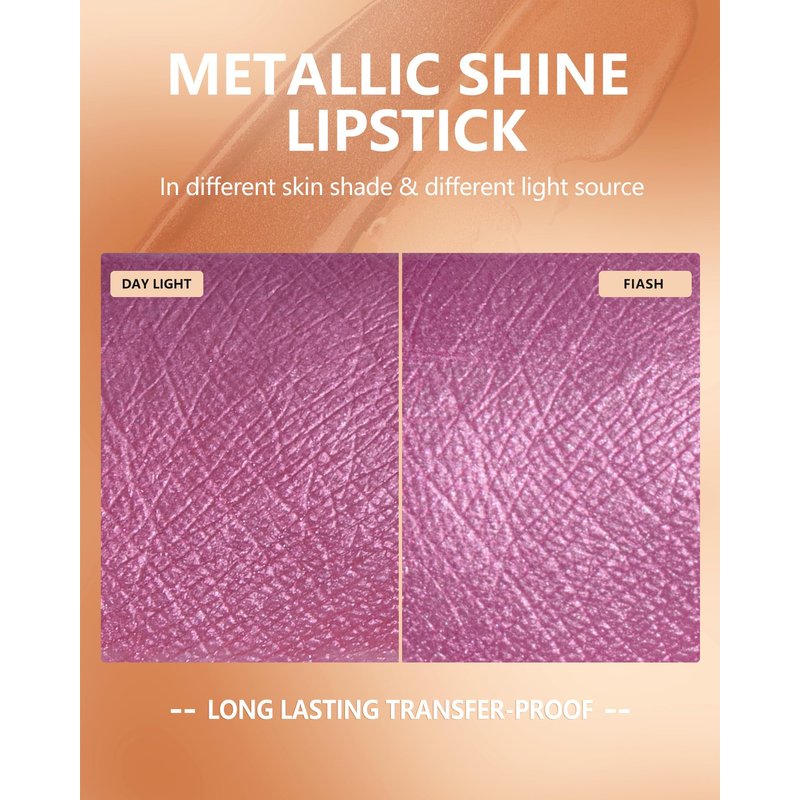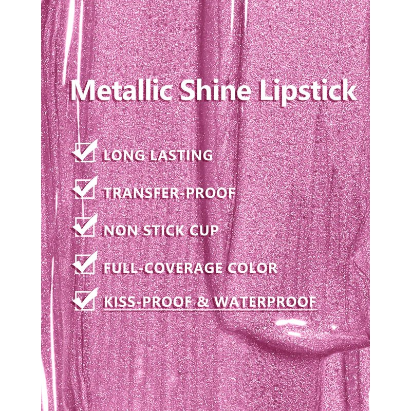 - Transfer proof & Long Lasting Lipstick: After it sets, this metallic lip gloss is ready to stay put. Get pro full-coverage color without worrying that your pearlescent lipstick will transfer to your coffee cup. Oil-based foods or lip toppers may affect the long wear.