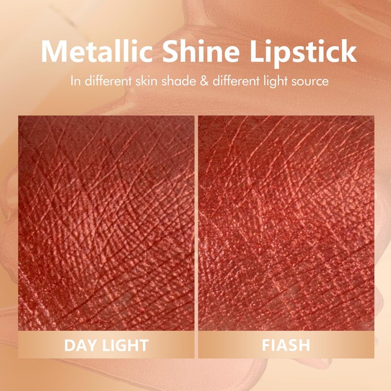 - Transfer proof & Long Lasting Lipstick: After it sets, this metallic lip gloss is ready to stay put. Get pro full-coverage color without worrying that your pearlescent lipstick will transfer to your coffee cup. Oil-based foods or lip toppers may affect the long wear.