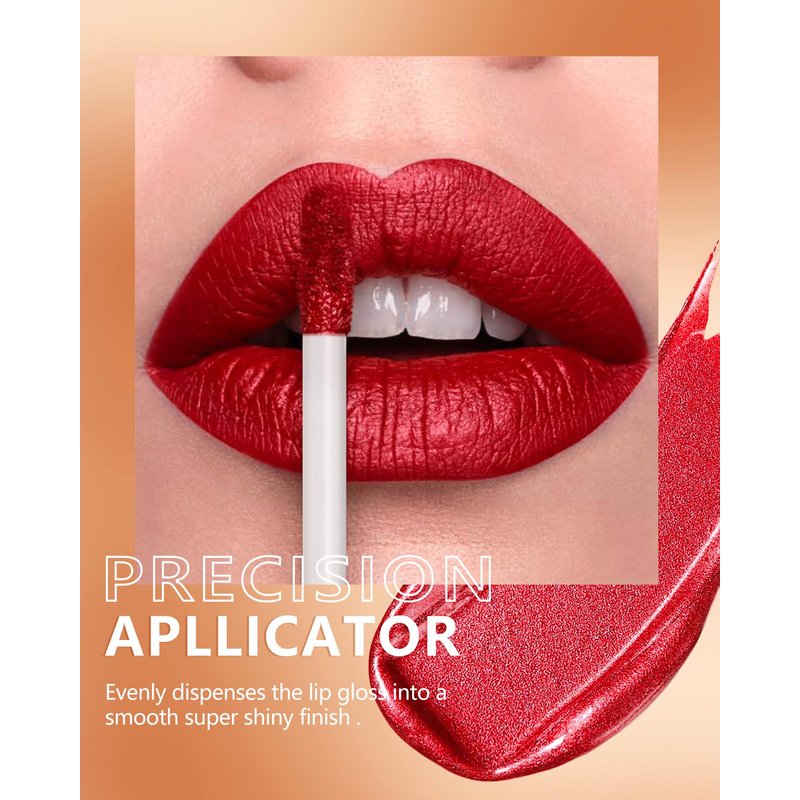 - Metallic Lipstick: This red liquid lipstick is infused with pearlescent pigments that stay all day and won’t make your lips feel dry.You can get full coverage lips payoff with just one swipes. Apply a thick layer or a thin layer can show different style.