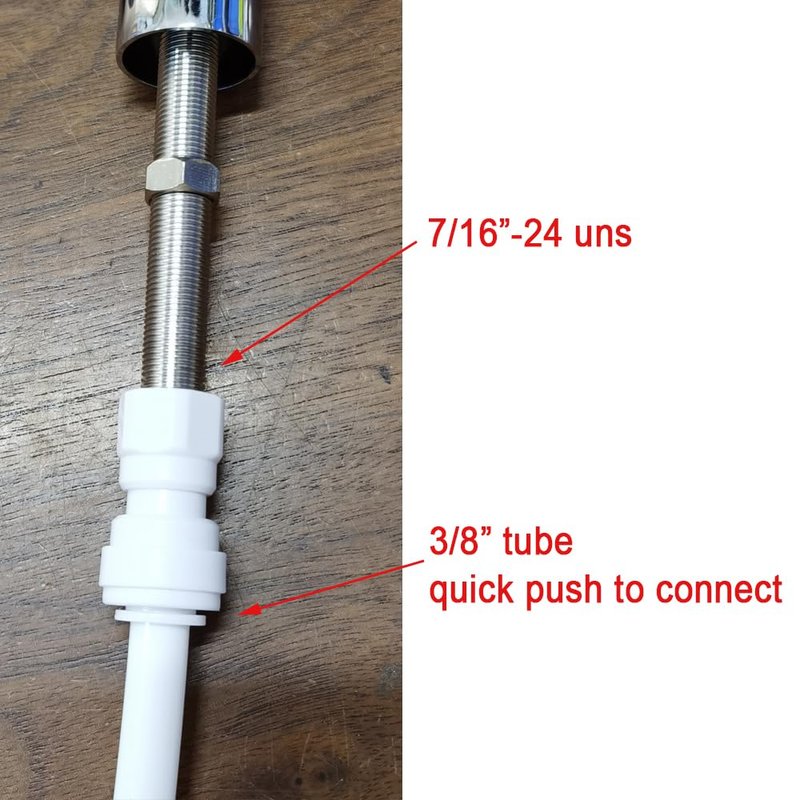 - 3/8" Tube OD x 7/16"-24 UNS Quick Connect Fitting Fits Standard 3/8" o.d. Tubing Used on Most RO water beer Systems.