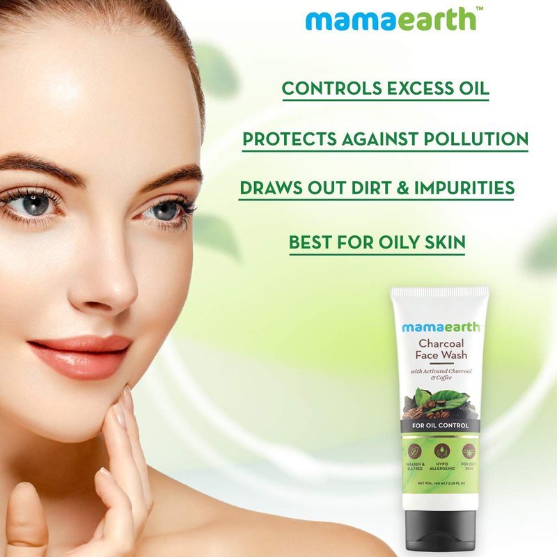 Mamaearth Activated Charcoal Face Wash for Oily Skin | Deep Cleansing & Purification with Coffee | Controls Excess Oil, Sebum & Unclog Pores | 3.38 Fl Oz (100ml)