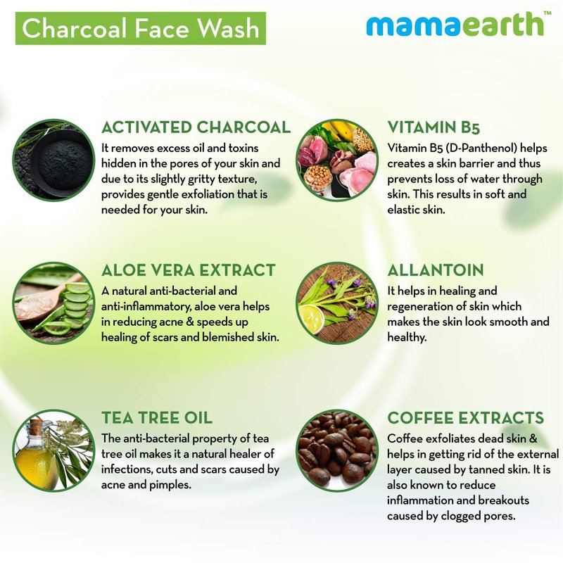 “Hi! I am Mamaearth’s SLS & Paraben free Charcoal Face Wash for healthy and glowing skin. Activated Charcoal in me gently draws out dirt, impurities, micro particles and make up, leaving skin clean and fresh. Clay in me deeply penetrates pores removing excess oil from skin without irritating or over drying it. Coffee vitalizes the skin by removing dead skin cells and makes the face glow. Dermatologically tested and pH balanced, I take gentle care of your skin. I leave skin feeling soft and smooth as I contain no harmful chemicals like SLES, sulfates, phthalates or artificial fragrance.