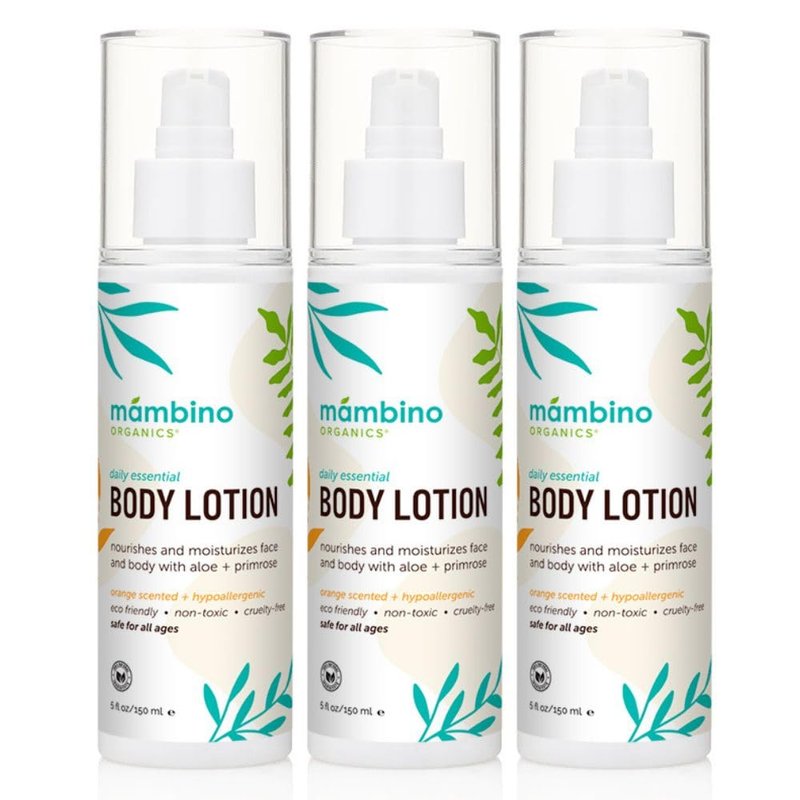 Mambino Organics Daily Essential Face And Body Lotion, Coconut + Primrose, 5 Fluid Ounces, 3 Pack