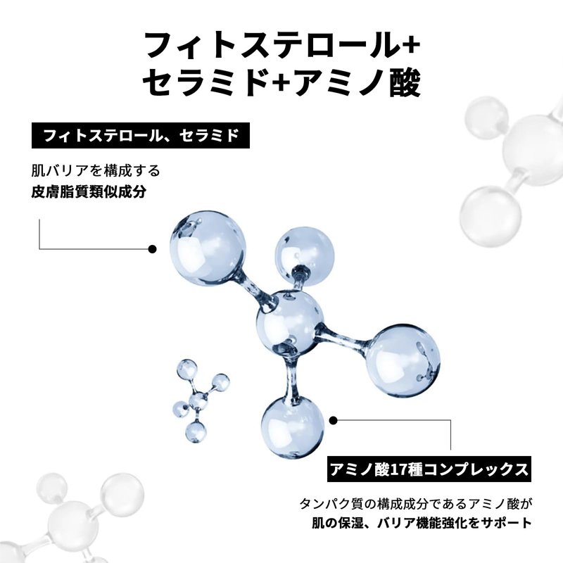 - [ Infusion of Nourishing Ingredients ] : Fortify your skin's barrier with our powerful combination of phytosterol, ceramides, and a 17-amino acid complex. These key ingredients have been selected for their abilities to enhance hydration and strengthen the skin.