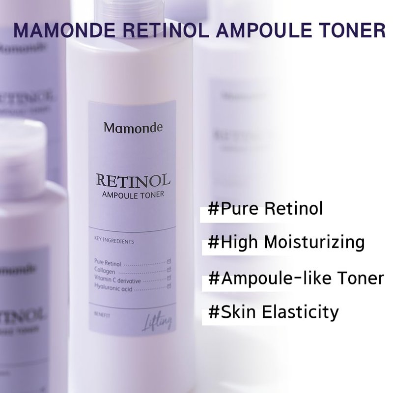 - ONE-STEP CARE FOR SKIN MOISTURE, ELASTICITY AND TEXTURE: Thanks to those 4 star ingredients, Mamonde retinol ampoule toner helps skin toning, moisturizing, skin elasticity at once. It completes a well-balanced feeling of moisture and elasticity.