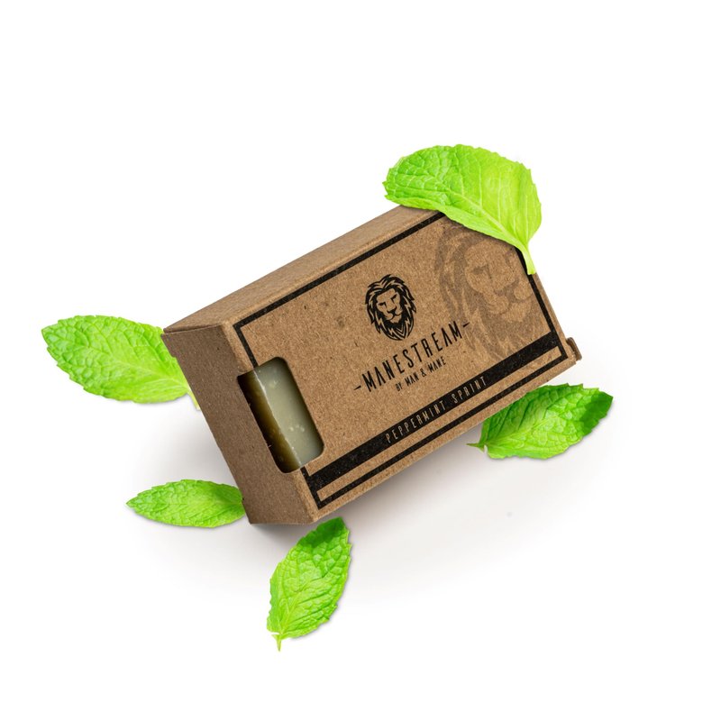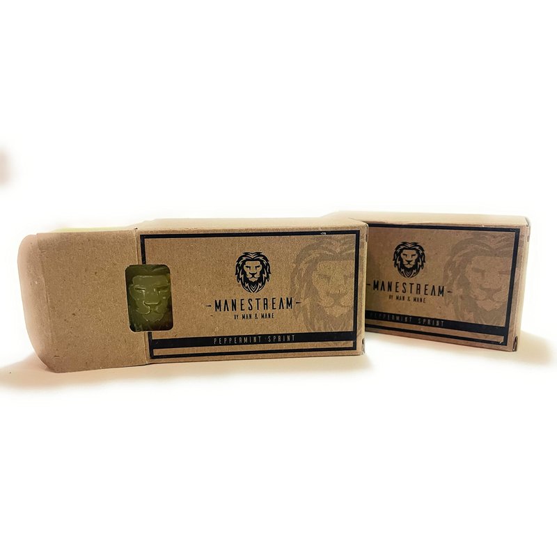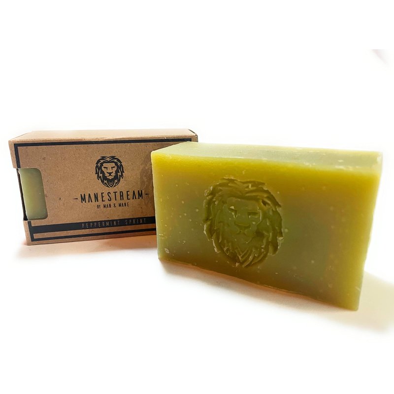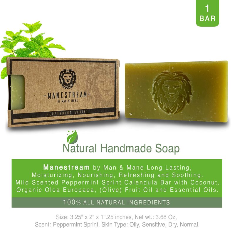 MAN & MANE Manestream Long Lasting, Mild Scented Peppermint Tea Tree 2-in-1 Skin and Shampoo Bar CocoaButter, AloeVera, Jojoba, Bran and Essential Oils, Natural Handmade