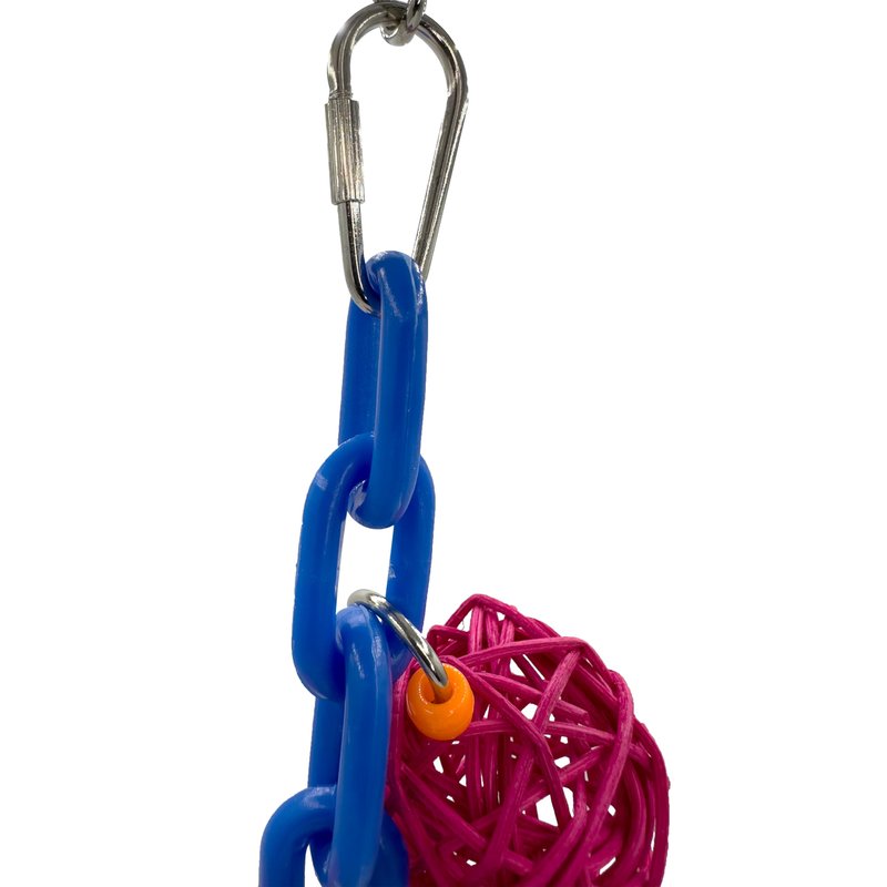 - COLORFUL CHAIN AND VINE BALLS - The colorful plastic chain is great for small pets to climb on. Dangling from it are 4x colorful vine balls. These natural rattan balls are easy for pets to chew.