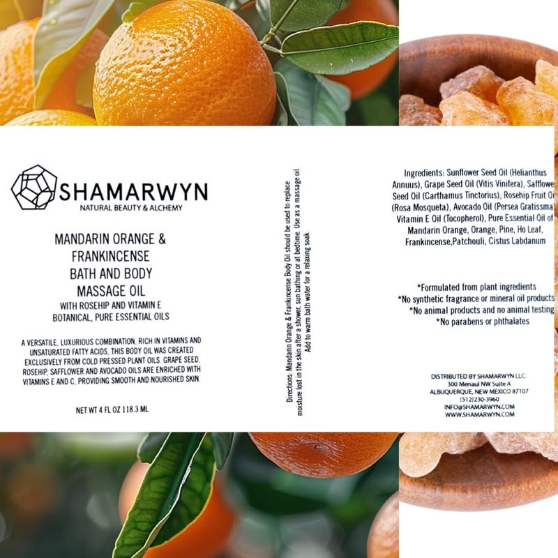 Mandarin Orange & Frankincense Body Oil | Natural Organic Bath & Massage Moisturizer with Rosehip & Vitamin E | 4oz