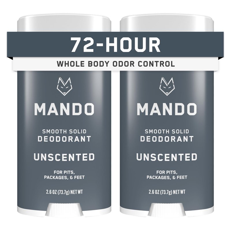 Mando Whole Body Deodorant For Men - Smooth Solid Stick - 72 Hour Odor Control - Aluminum Free, Baking Soda Free, Skin Safe - 2.6 Ounce (Pack of 2) - Unscented