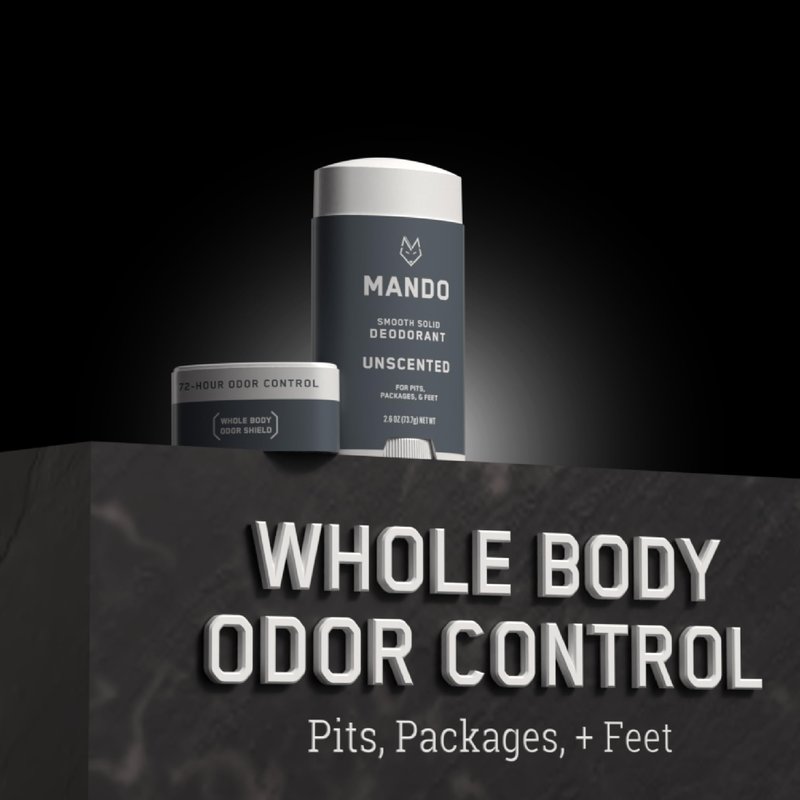 SMELL BETTER EVERYWHERE - Odor control for pits, packages, and feet — think ball sacks, butt cracks, thigh creases or anywhere else you have odor but wish you didn’t. HIGH PERFORMANCE - Mando is clinically proven to block body odor all day and continues to control odor for 72 hours. POWERED BY SCIENCE - Rather than covering up odor after it forms, our formula is pH optimized to block odor before it starts. You could even call us a PREodorant! SERIOUSLY SAFE - Doctor developed and safe for any external use. Formulated without benzene. Free of aluminum baking soda, blue or green dyes, and parabens. Hypoallergenic and skin safe for even our most sensitive parts.