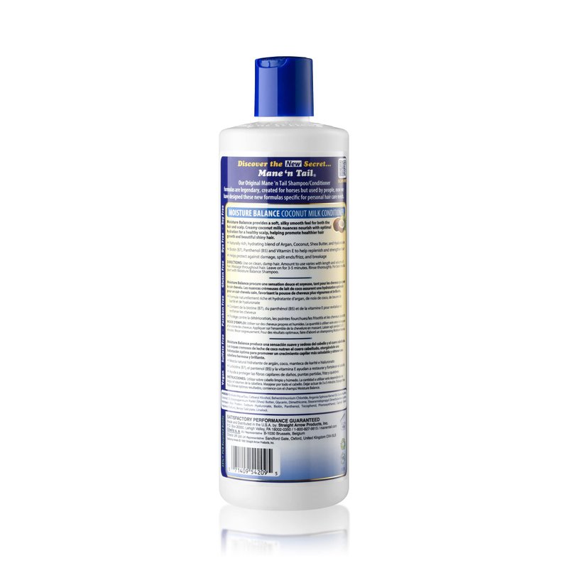 Mane 'n Tail Original Shampoo/Conditioner formulas are created for horses, but used by people. Now we have designed these new formulas specific for personal hair care needs. Moisture Balance Conditioner provides a soft, silky smooth feel for both the hair and scalp. It is sulfate free, paraben free and vegan. Naturally rich hydrating blend of coconut, argan, shea butter and hyaluronate. Creamy coconut nuances nourish with optimal hydration for a healthy scalp, helping promote healthier hair growth and beautiful shiny hair.