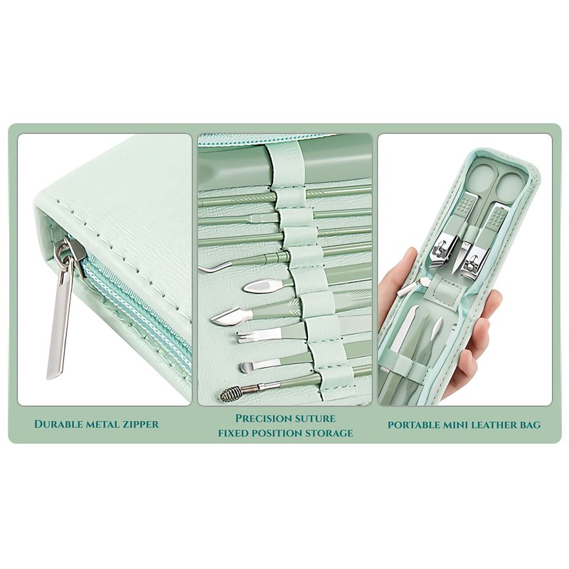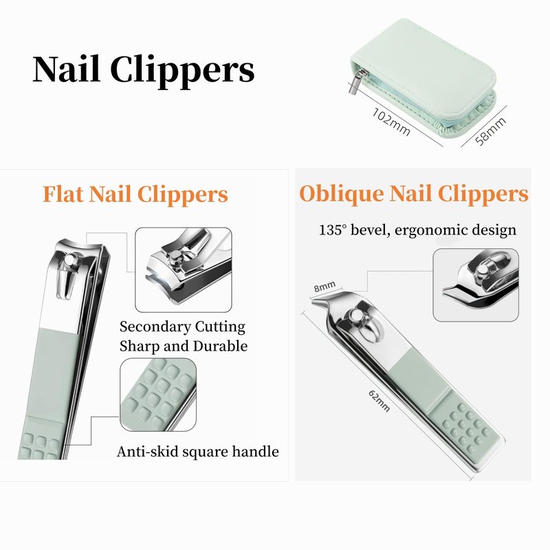 - Personalized Design : The nail clipper cover is equipped with a luxurious and fashionable leather cover made of advanced PU material, which can be opened by simply opening the zipper; The watch case feels very soft and has a slight padding inside, which can firmly secure the beautiful mint green nail care set components inside