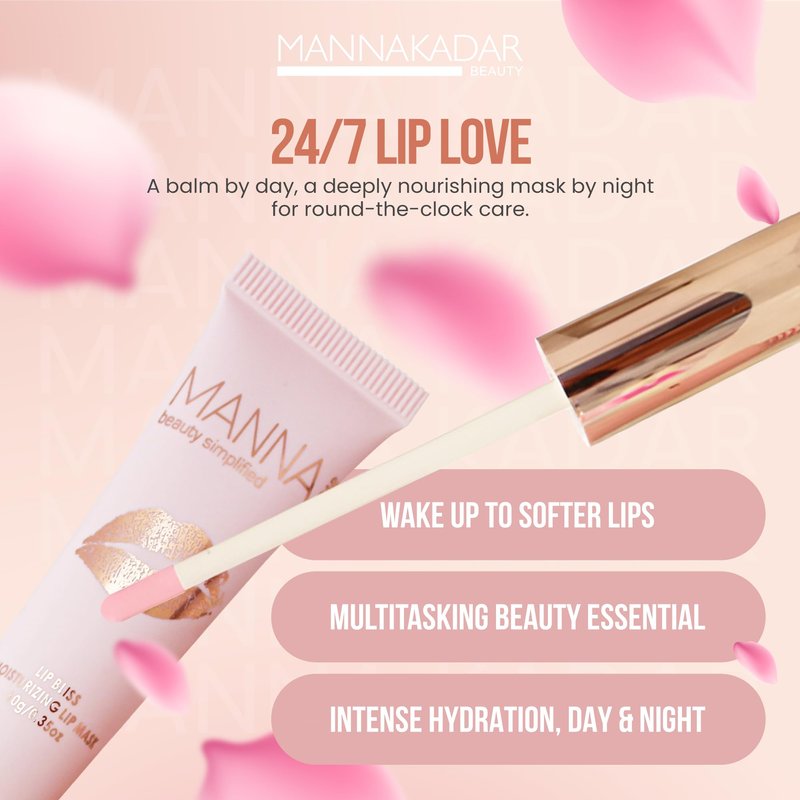 - OVERNIGHT LIP NOURISHMENT: Apply Manna Kadar Lip Bliss Lip Mask before bed and wake up to soft, smooth lips. Infused with nourishing ingredients, this luxurious blend deeply hydrates, nourishes, and conditions your lips as you unwind, helping to alleviate dryness and chapping. By morning, your lips will feel refreshed, supple, and ready for the day. Ideal for restoring moisture overnight, it's the perfect addition to your evening beauty routine for healthier, fuller-looking lips.