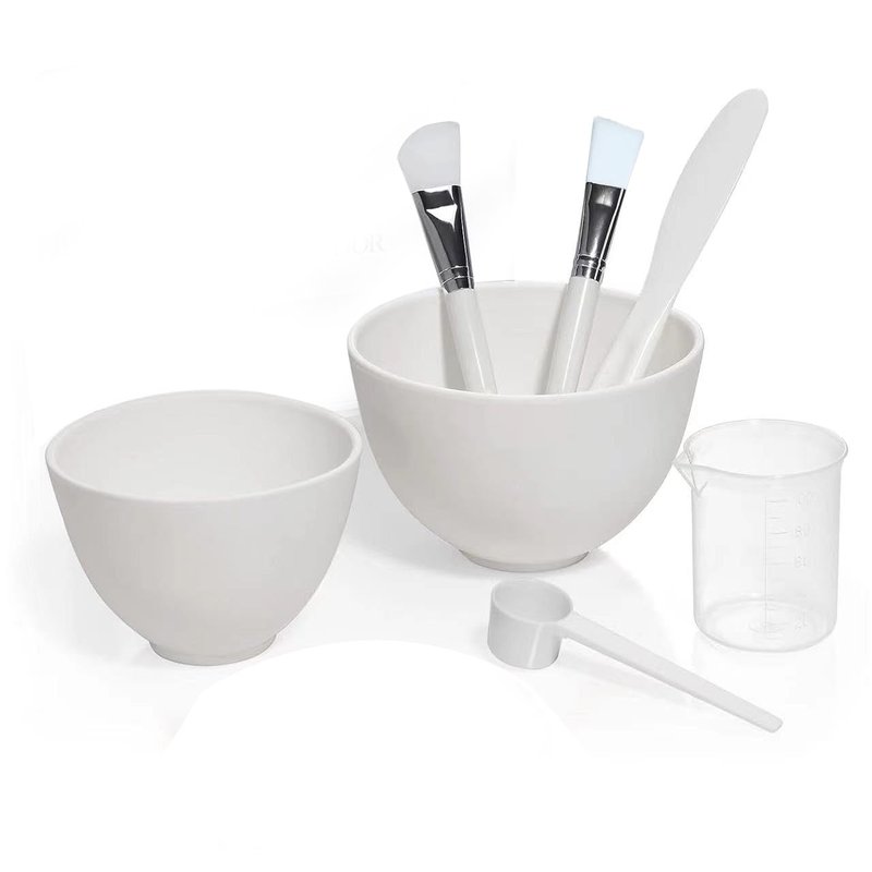 - Mask kit: 1big silicone mask bowl,1 small silicone mask bowl,1Silicone Face Mask Brush,1Premium Soft Face Brushes . 1mask adjustment stick, 1 measuring spoon, 1 measuring cup, and with mask tool storage bag. This mask bowl and brush set are essential tools for skin care. You can easily make a perfect and safe mask at home.