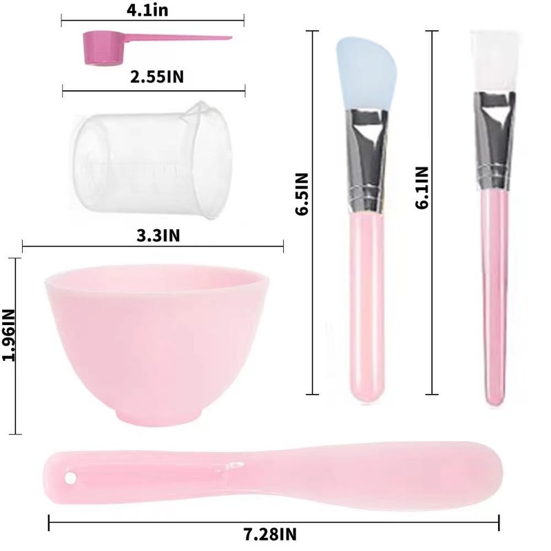 - Mask kit: 1 silicone mask bowl,1Silicone Face Mask Brush,1Premium Soft Face Brushes . 1mask adjustment stick, 1 measuring spoon, 1 measuring cup。 and with mask tool storage bag. This mask bowl and brush set are essential tools for skin care. You can easily make a perfect and safe mask at home.