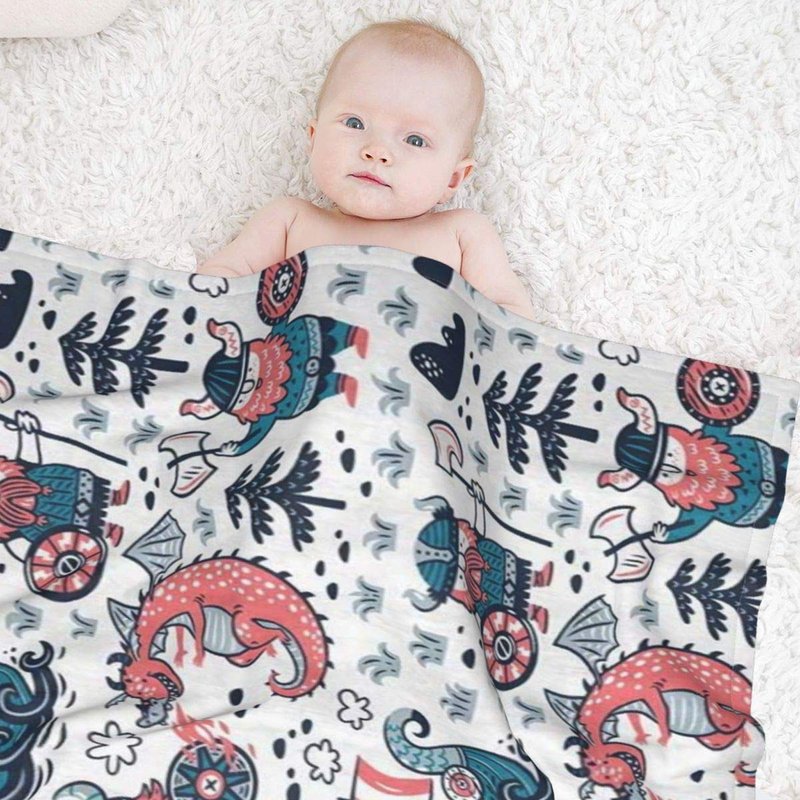 Mantaiyuan Fleece Baby Blanket Cartoon Vikings Dragon Smooth and Soft Receiving Blanket Unisex for Stroller, Crib, Newborns, Carseat 30x40 in