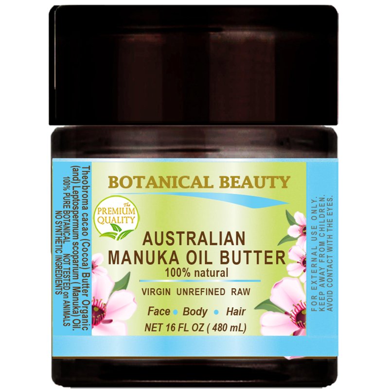 MANUKA OIL BUTTER Australian RAW VIRGIN UNREFINED for Face, Body, Hair. Dry Skin, Cracked Hands with Cocoa Cacao Butter and Manuka Honey Essential Oil 16 Fl. oz. 480 ml by Botanical Beauty