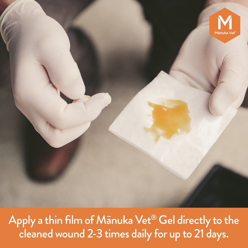 - Safe and easy to apply. The gel can be safely applied at any stage of healing, on an open wound or sore or beneath a bandage. Our Manuka honey wound care products are easy to use at home and come with a leaflet with expert veterinarian instructions.