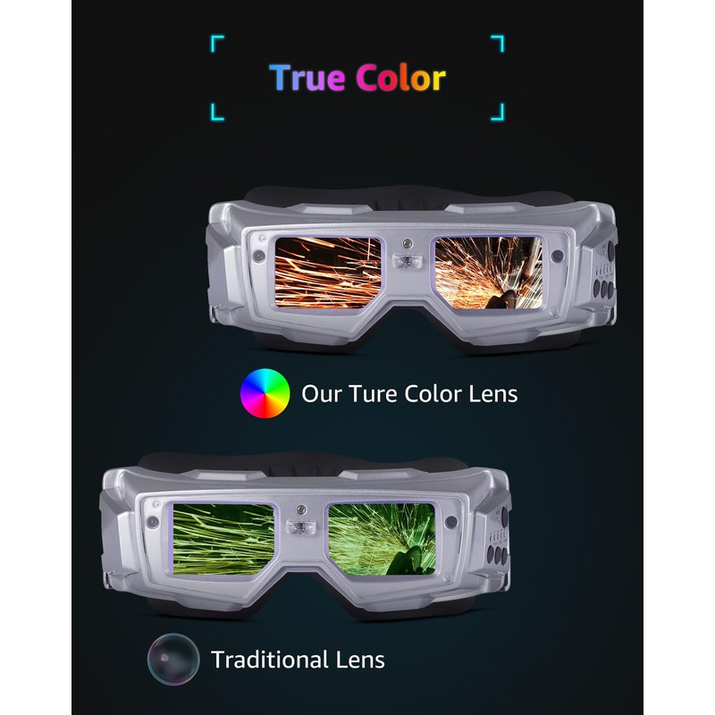 MANUSAGE True Color Welding Goggles Auto Darkening, Welding Mask Auto Darkening with 2 Sensors Shade 5-13, Welding Glasses Auto Darkening Perfect for Wearing a Hat While Doing TIG MIG ARC