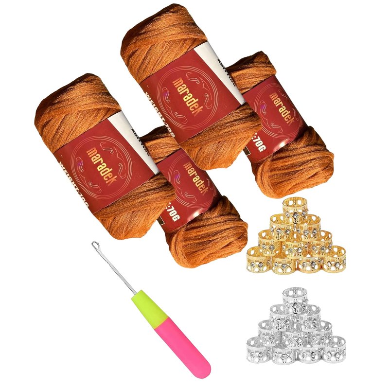Maradek 100% Acrylic Brazilian Wool Yarn 70g Fiber for Hair Crochet/African Weave/Knitting/Dreadlock Extensions/Twists and More (4 Pack, Ginger)