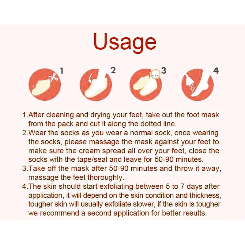 - Easy to Use: Wash your feet thoroughly and dry them completely. Simply slip on the mask, relax for 60-90 minutes, and let the mask do the work. Within 5-7 days, you'll notice the dead skin starting to peel off effortlessly.
