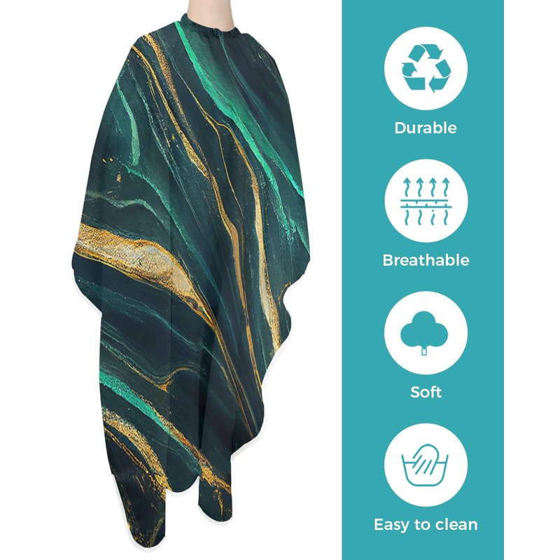 Marble Emerald Green Barber Cape - Salon Hair Cutting Cape for Women,Men,Kids,Adults,Modern Abstract Gold Art Haircut Cape with Adjustable Elastic Neckline Hairdressing Stylist Cape Gown Accessories