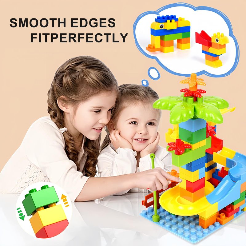 Marble Run Maze Track Sets - Educational Building Blocks for Toddlers - STEM Learning Toys for 2-8 Years Old Boys & Girls - Compatible with Big Classic Blocks - Marble Run Fun and Games (01)