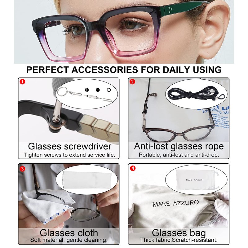 - Super value: a small screwdriver to tighten the screws regularly; a glasses chains to avoid loss and breakage; a soft cloth to keep reader clean; a drawstring bag to carry; as a beautiful gift to you! Any problem in the purple computer readers 150, please contact MARE AZZURO to get free money back or replacement service.