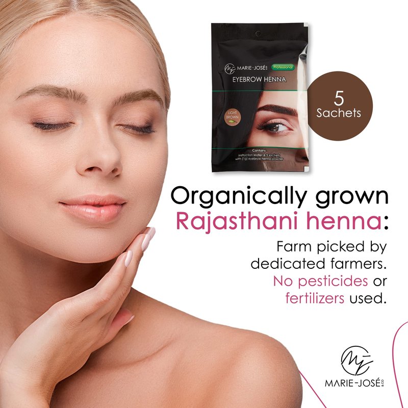 Marie-José & Co Henna Eyebrow Dye Light Brown, Eyebrow for Spot Coloring, Long-Lasting Eyebrow Powder, Water & Smudge Proof, 5 Sachets, Good for 50 Applications