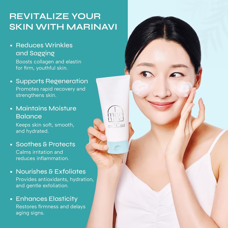 Marinavi - Natural Cleansing Foam - Gentle Facial Cleanser - Anti-Aging Face Cleanser - Exfoliating Cleanser - Contains Natural Calcium, Seaweed, & Kelp - Cleanses, Exfoliates, & Protects 5.07 FlOz