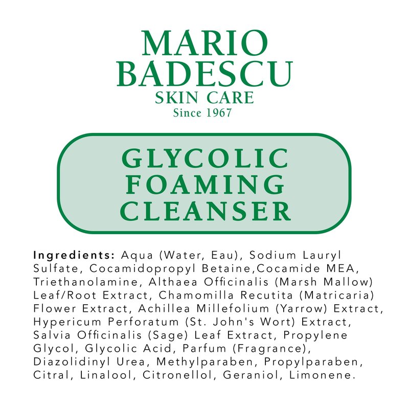 Mario Badescu Glycolic Foaming Cleanser for All Skin Types| Exfoliating Face Wash with Glycolic Acid & Aloe Vera| Visibly Evens Skin Tone & Texture | 6 Fl Oz (Pack of 1)