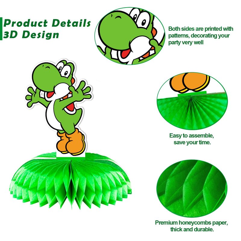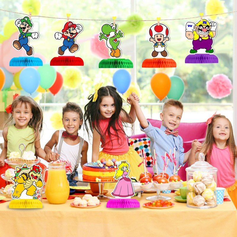 - 【Widely Use】 Mario themed Honeycomb Centerpieces decorations are suitable for most events, such as children's parties, family gatherings, school recreational activities, or other decorations. These decorations can create an enjoyable and active atmosphere to these scenes. If you are going to throw a Mario theme party, the decorations kit make for fantastic decorations.