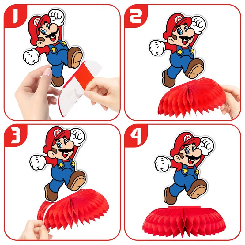 - 【Beautiful Design】 The vivid Mario print and vibrant colors of our Mario party Honeycomb Centerpieces set will create the most celebratory atmosphere for you and your guests. With its stylish design and cute characters, it's sure to be a hit with both kids and adults!