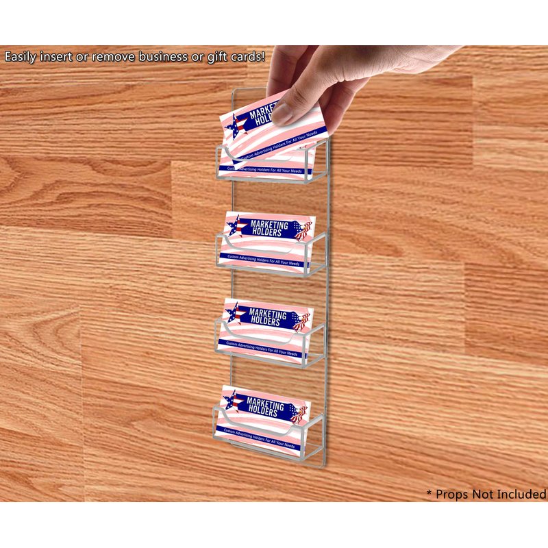 Marketing Holders Wall Business Card Holder with Hanging Hardware for 3.5" x 2" Gift Cards Clear Acrylic 4 Slot Display for Retail Stores and Tradeshows and Expos