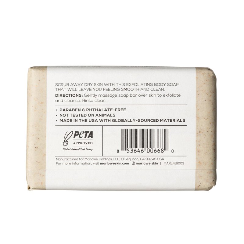 - Scrub It Away: MARLOWE. deep cleansing bar soap for men uses apricot seed powder and ground pumice to buff away dryness for smooth, clean skin. This mens soap body wash bar gently lifts away dirt and rough skin without stripping natural moisture with the support of Shea Butter and Olive oil to aid in moisturization