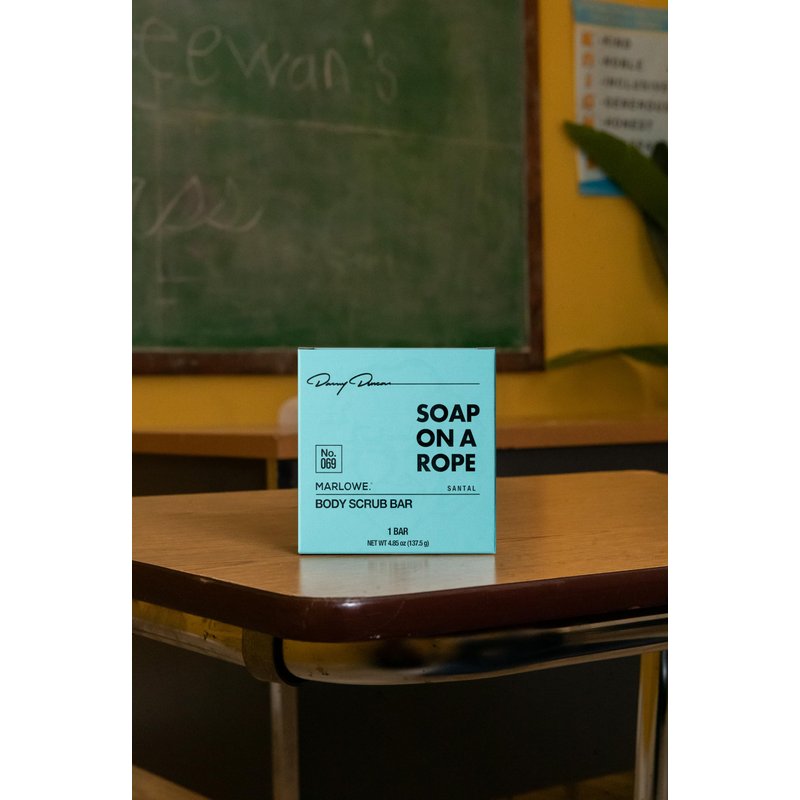 MARLOWE. x Danny Duncan No. 069 Soap On A Rope Body Exfoliator Scrub Soap Bar 4.85 Oz with Pumice, Apricot Seed Powder, Shea Butter & Olive Oil, Formula with No Parabens & Sulfates, Santal Scent