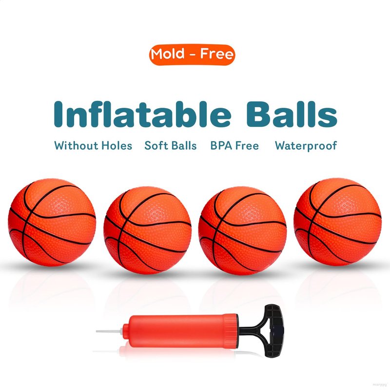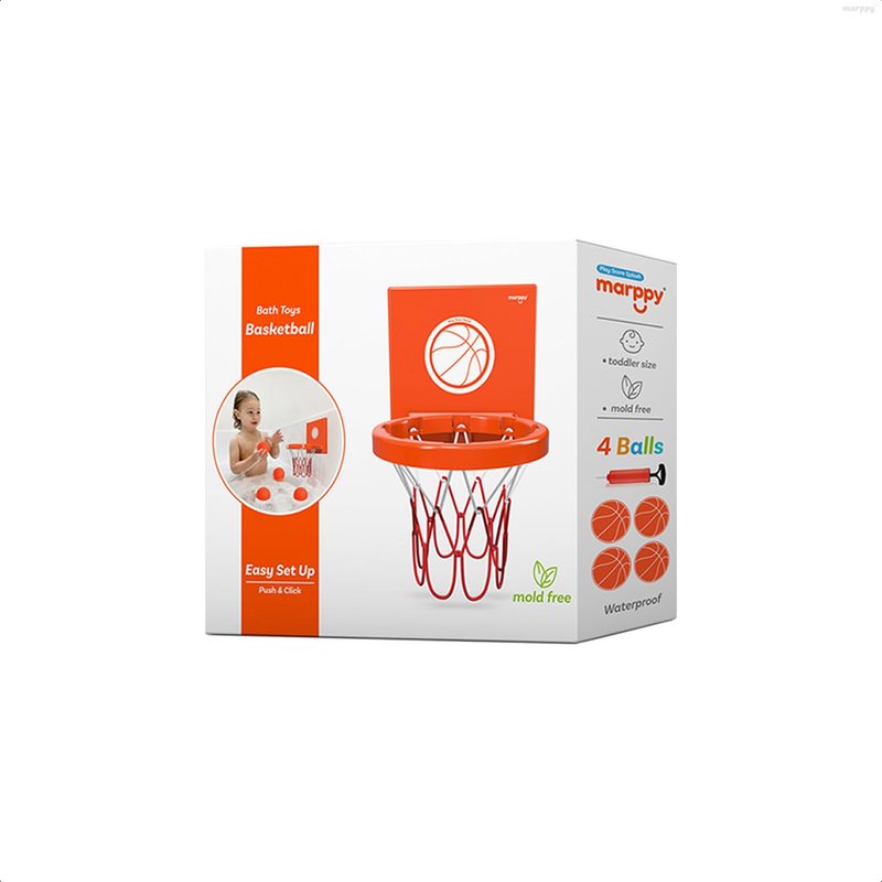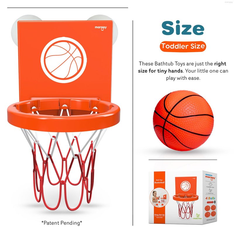 MARPPY Bath Toys - Bathtub Basketball Hoop for Kids, Toddlers - Suction Cup Basketball Hoop and 4 Soft and No Hole Balls - Baby & Toddler Bath Toys - Boys & Girls - Mini Basketball Hoop