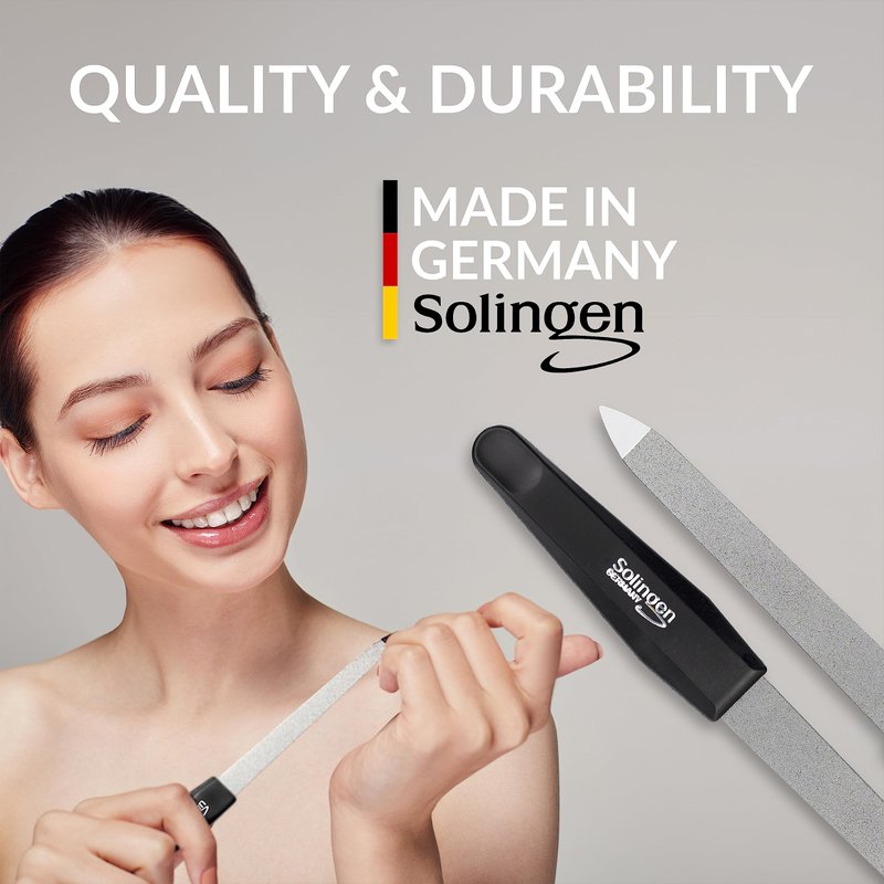 marQus Sapphire Nail Files Set - 6 Pcs with 3-Way Nail Buffer - Stainless Steel, Double Sided Sapphire Grit for Natural Nails, Solingen Germany - Black Non-Slip Handle - Professional Nail Care Kit