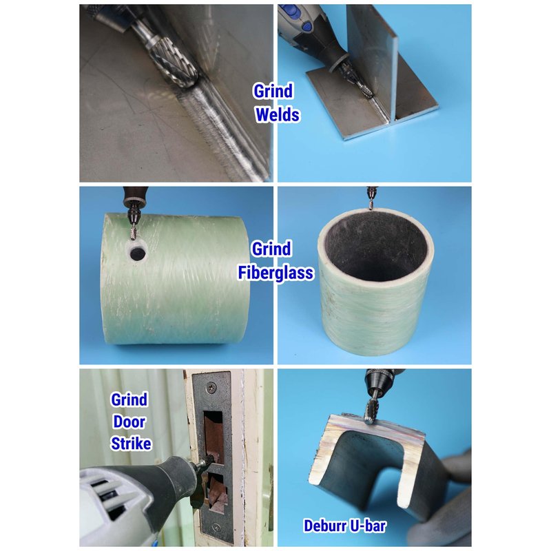 - Very sharp, aggressive, tough, well-balanced and durable, perfect for tight spaces than grinding discs. great for detail work, for lots of materials removal, please use our 1/4" shank burrs and 500W+ rotary tool.