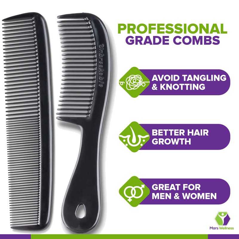 THE PERFECT COMB KIT - The Mars Wellness 4 Piece Comb Set is a professional grade combo that includes a 6” Handle Styling comb, 9” Heavy Dresser Comb, 8” Dresser comb and 8.5” All-fine Professional Tail comb