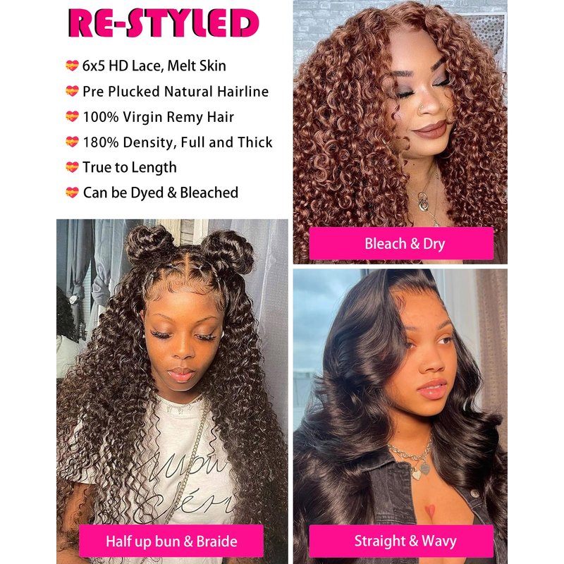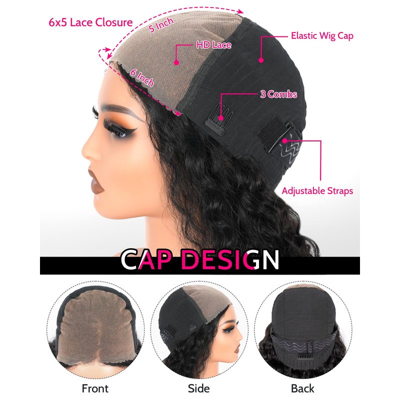 - EXTENDED LACE AREA: 6x5 lace closure loose deep wave wig allows for flexible styling options. Handcrafted technology with pre-bleached knots simulates a natural scalp appearance.