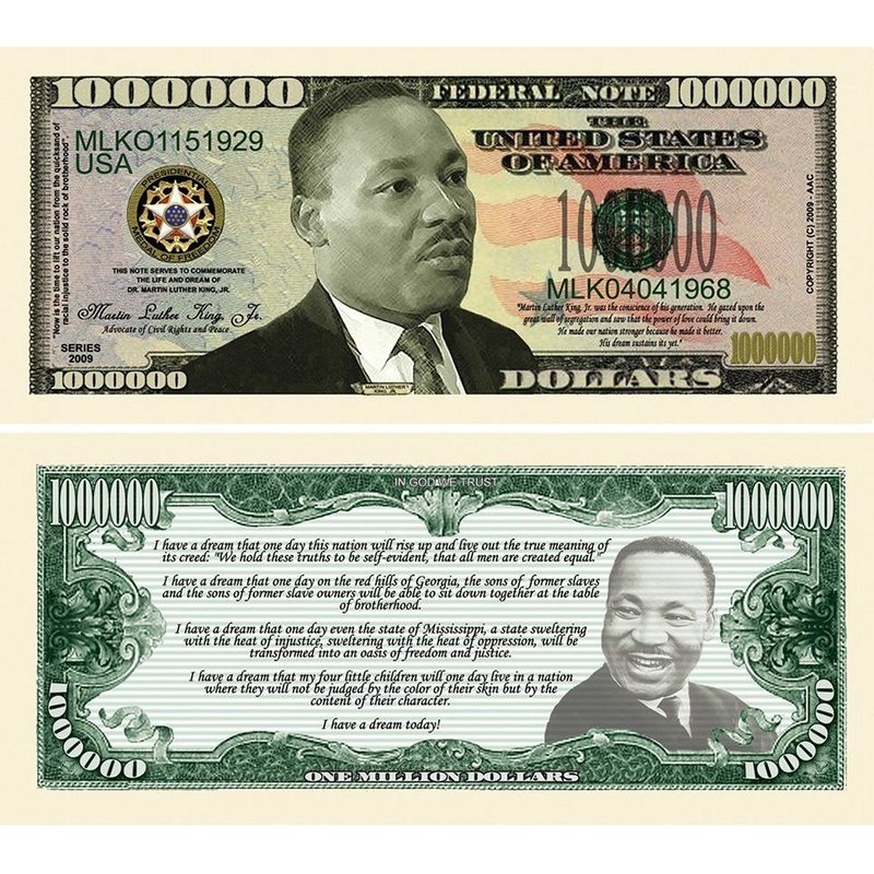 Martin Luther King Jr. Million Dollar Bill with Bonus “Thanks a Million” Gift Card Set and Clear Protector