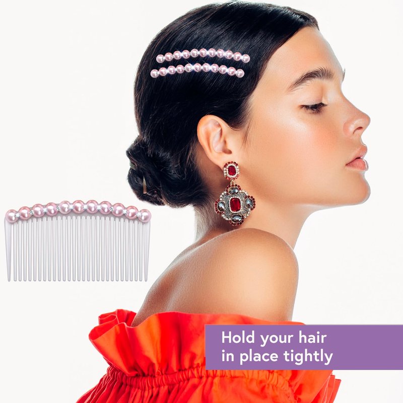 MARY LAVENDER Side Hair Comb with Pearls Rhinestone for Women Hold Bangs Hair Twist Clips, French Twist Hair Pin Decorative Hair Accessories for Girls Kids 5pcs
