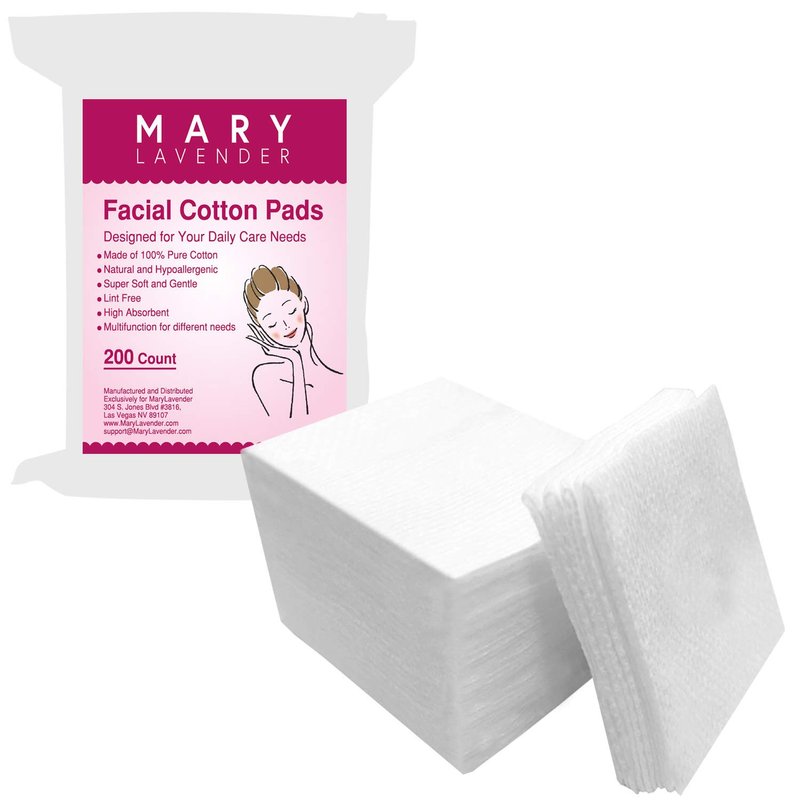 MARY LAVENDER Stretchable 100% Cotton Pads 4-Layer 2"*2" for Face, Makeup Remover Wipes Cotton Squares Pads, Facial Cleansing Towel, DIY Acne/Rejuvenation Toner Mask, Lint-Free, 200 Count
